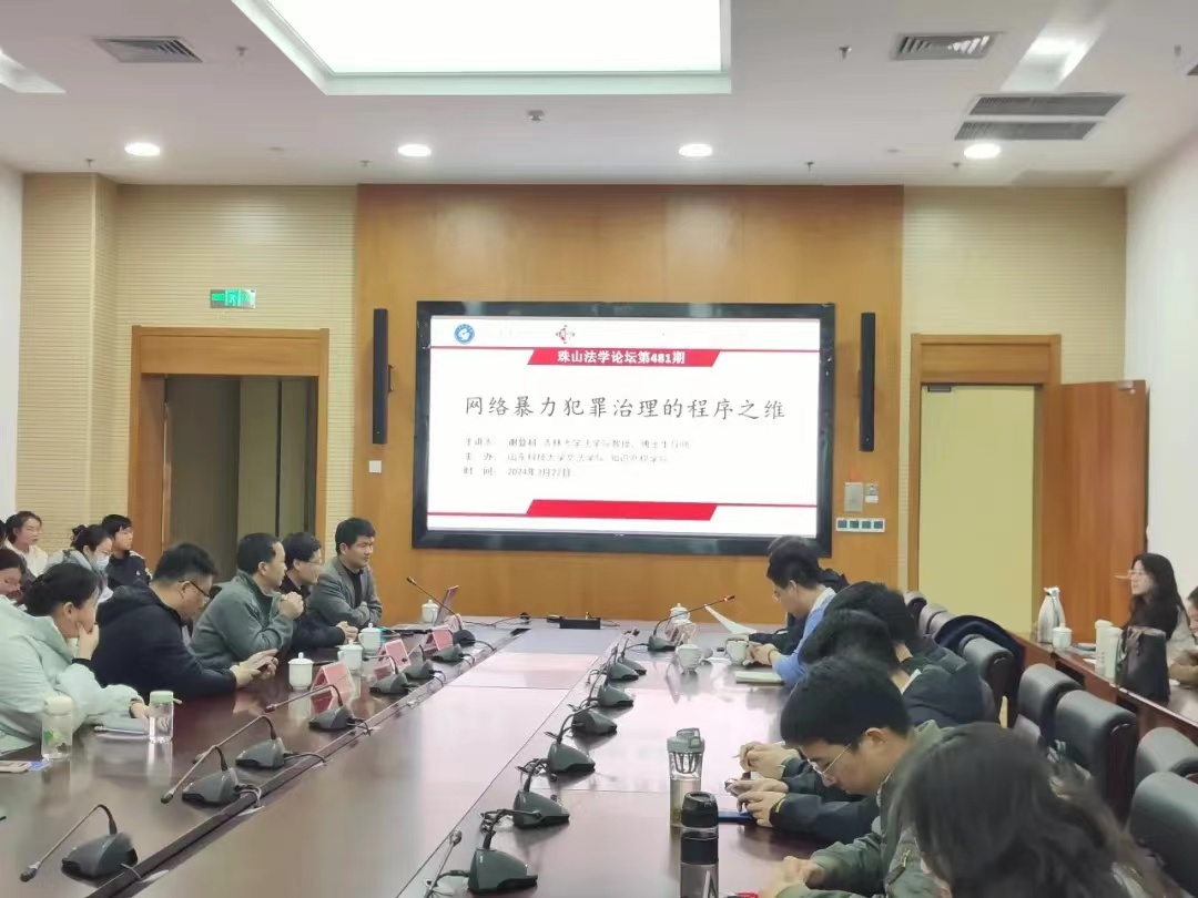 2024年3月22日晚 ,吉林大学法公司谢登科教授在图书馆203会议室主讲了题为《网络暴力犯罪治理的程序之维》的讲座。本次讲座由SUNBET申博副经理秘明杰主持。诉讼与司法制度研究所王次宝、吴立志、李贵扬、杨厚瑞、孙明泽等几位老师等与公司一百余名研究生到场参加讲座。
