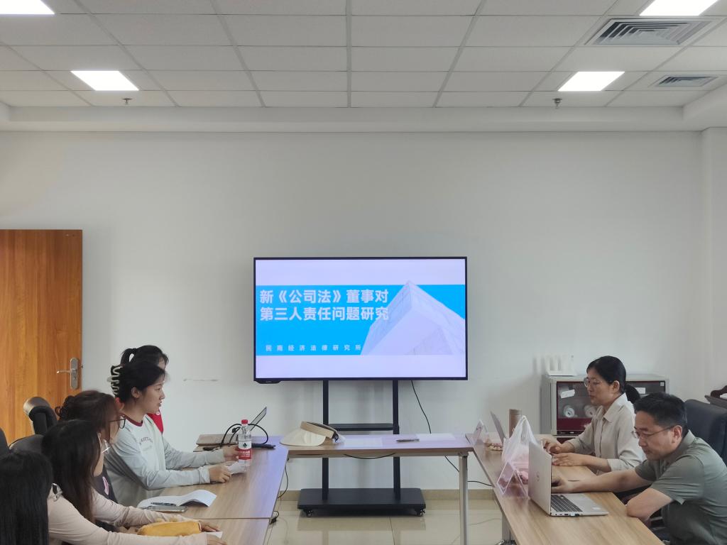 2024年6月28日,SUNBET申博民商经济法律研究所在图书信息中心13楼第一会议室举办了“新《公司法》董事对第三人责任问题研究”学术沙龙。张钦润、黄晓林两位老师受邀出席并担任点评人,民商经济法律研究所30余名研究生参加了本次活动。