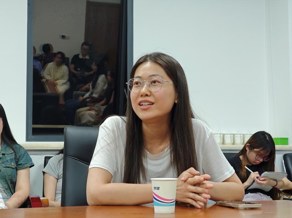 随后,研究生一年级的同学们逐一进行了自我介绍,并汇报了未来三年的学习规划。在研究生一年级的同学介绍完毕后,研究生三年级的张瑜同学作为代表,分享了自己的科研经验。她提出了四点建议:第一,做好规划,建议同学们制定月计划和日计划;第二,要有主动性,主动联系导师并与导师交流近期的学习成果与困惑;第三,建立属于自己的科研网络,在科研道路上遇到问题,不仅可以寻求导师的帮助,也可以向同门、学姐学长寻求帮助;第四,科研压力应对,科研往往是一个艰苦并且漫长的过程,因此,学会管理压力并关爱自己也是十分重要的。张瑜同学的精彩分享赢得了在场师生的热烈掌声。
