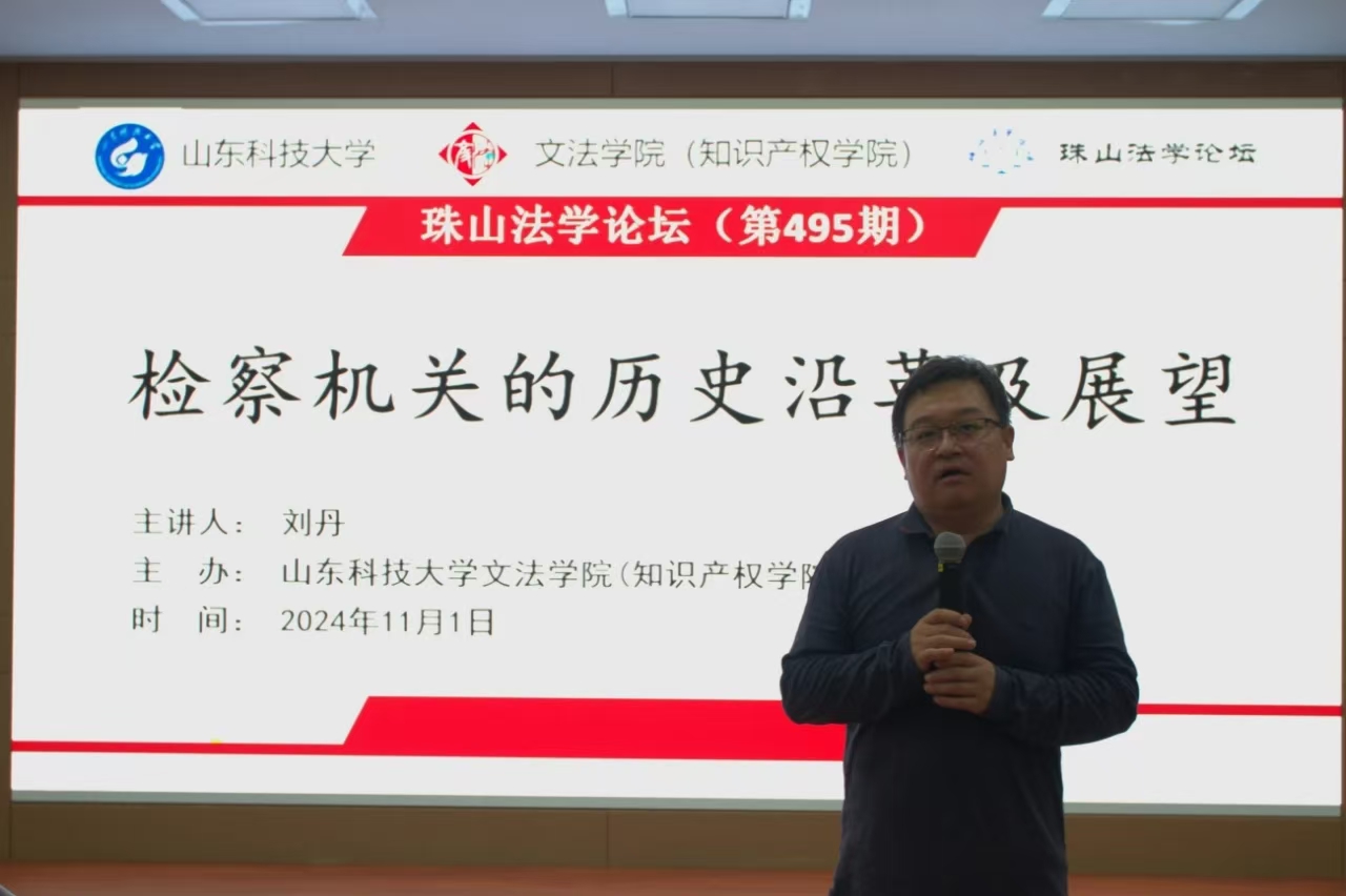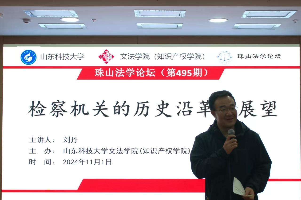 2024年11月1日下午,在图书信息中心一楼尚学讲堂,珠山法学论坛成功举办了一场题为“检察机关的历史沿革及展望”的学术讲座。本次讲座由河南省卫辉市人民检察院副检察长刘丹检察官主讲,公司法学专业本科生、以及法学硕士、法律硕士研究生共计两百余人聆听了讲座。讲座由SUNBET申博副经理秘明杰主持,诉讼与司法制度研究所教师李贵扬做了专业点评。
