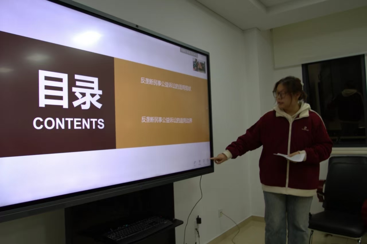 沙龙由诉讼与司法制度研究所所长王次宝主持,分为主旨发言与点评互动两个环节。沙龙伊始,王次宝老师对出席本次沙龙的专家、老师与同学致以热烈的欢迎,并介绍了本次沙龙的选题背景与价值。在主旨发言环节,四位研究生同学围绕沙龙主题进行了主旨发言。李宝华重点探讨了检察民事公益诉讼级别管辖的现存问题与未来展望;刘琳深入分析了反垄断民事公益诉讼存在的主要问题;王现莹对个人信息保护检察公益诉讼的问题与完善进行了阐述;宋方彬则对行政公益诉讼的诉前程序进行了细腻的梳理和分析。在点评互动环节,三位实务专家针对同学们的主题发言进行了细致的点评与指导。刘丹检察官结合自身丰富的实践经验,对同学们的问题进行了详细的解答,并专门对公益诉讼的特殊性以及刑事附带民事公益诉讼中检察官的角色等进行了深入阐释。张秀军律师建议同学们在撰写论文时,一定要分析司法实践中遇到的问题,并在现有法律框架内大胆假设,提出能够解决问题的方案。管程程律师结合个人的执业经历,强调虽然个人会受到立场的影响,但我们仍应以朴素的正义观和对法律的信仰为基础来思考问题。