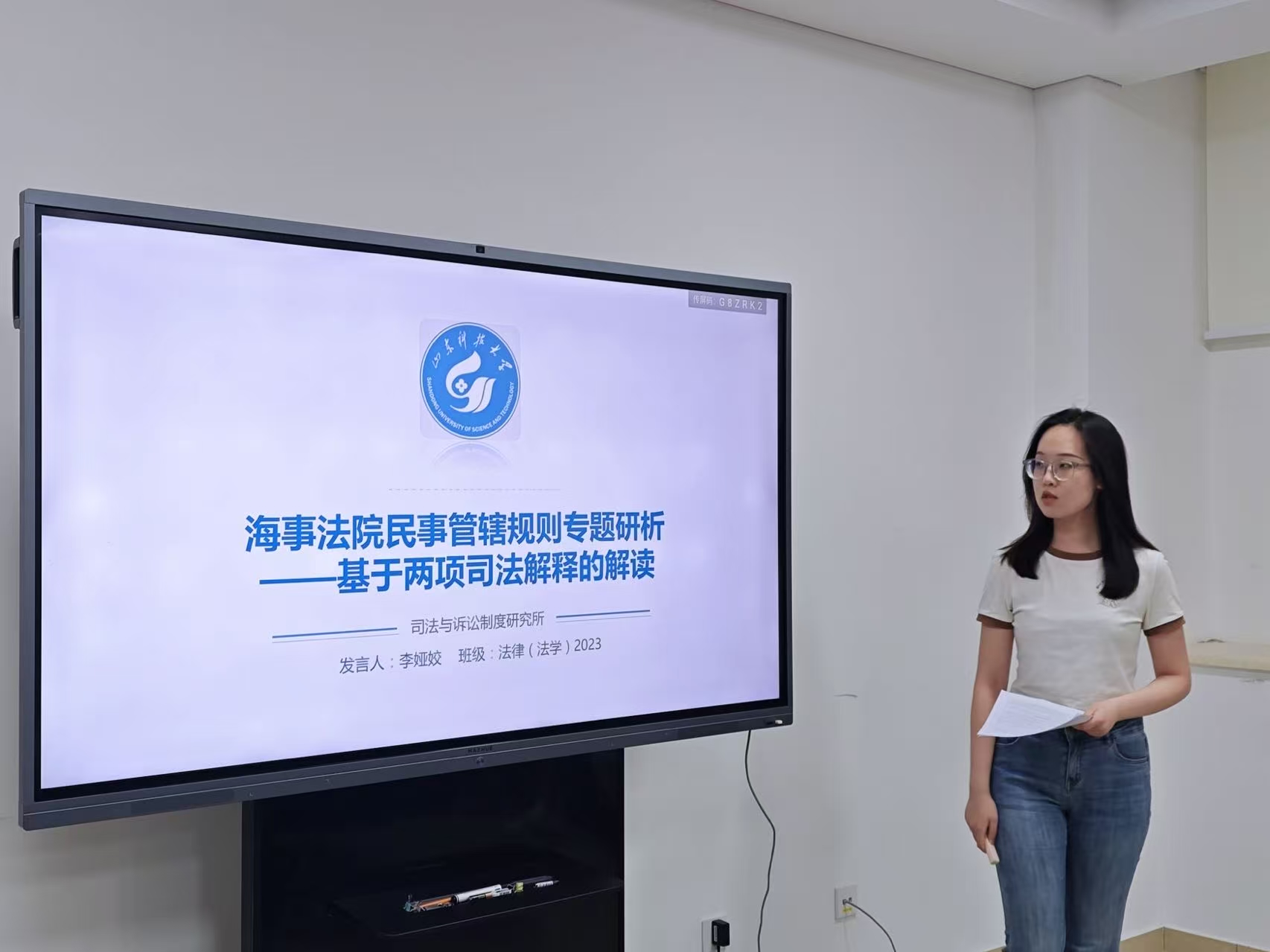 沙龙由诉讼与司法制度研究所所长王次宝主持,分为主旨发言、同学提问与教师点评三个环节。沙龙伊始,王次宝老师介绍了本次沙龙的选题背景与价值。在主旨发言环节,七位研究生同学围绕沙龙主题进行了发言。曲萌萌重点探讨了海事法院特殊管辖规则;许正宇深入分析了金融法院管辖规则;吕云汝对我国知识产权法院管辖规则进行了详细的阐述;衣欣芃对军事法院民事管辖规则进行了梳理和分析;徐一萍专门探讨了铁路运输法院民事管辖规则;李娅姣基于两项司法解释对海事法院民事管辖规则进行了解读;刘琳对互联网法院管辖规则进行了整理与分析。在同学提问环节,侯智聪、林立敏、王鹏飞、于双双、张博文五位同学对互联网法院是否应大力推广以及陆源污染如何界定等问题提出了自己的思考。发言同学和老师也对同学们的疑问进行了一一回应。