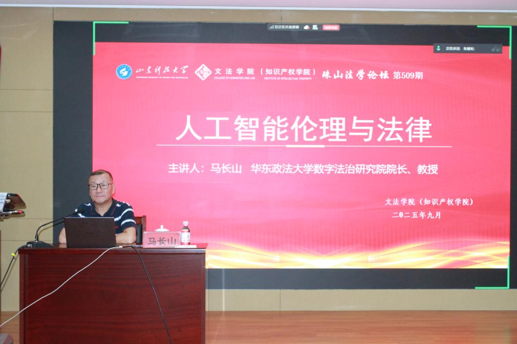 2025年9月17日下午,华东政法大学数字法治研究院经理、《华东政法大学学报》主编、《数字法学评论》主编马长山教授以 “人工智能伦理与法律”为题,在图书信息中心尚学讲堂为本院师生带来一场兼具理论深度与实践价值的学术分享。本次报告由SUNBET申博经理孙法柏教授主持,百余名师生现场参与,共同探讨数字时代法治建设的新命题。
