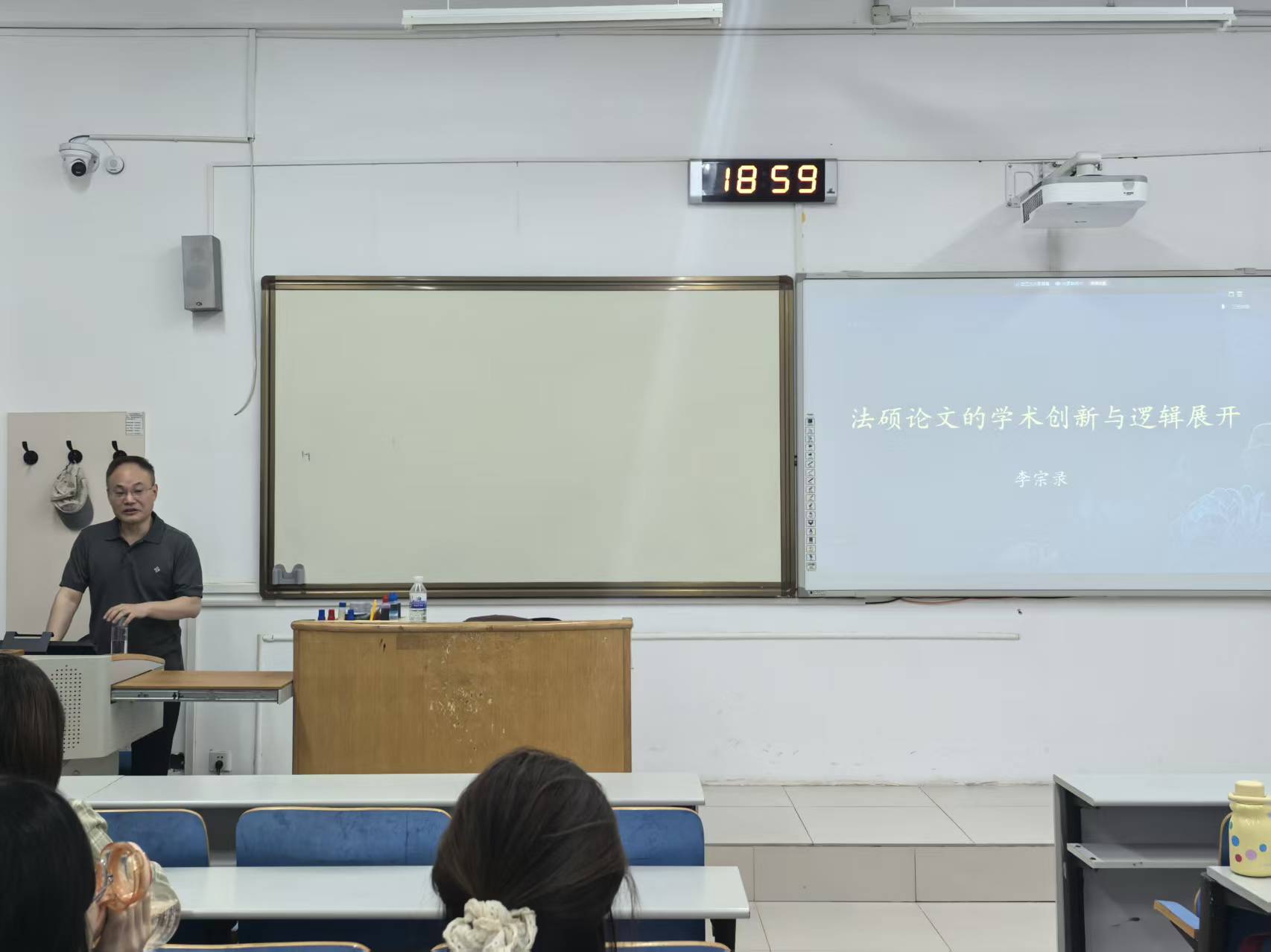 李宗录老师围绕法学专业硕士研究生论文的创新和逻辑展开讲座。李老师从复合应用型高层次法律人才的培养目标出发,指出学术论文应结合理论研究解决法律实务问题,在实务需求中定位论文的创新价值。就此,他对选题创新、研究方法创新、观点创新等进行了深入讲解。李老师强调,应当通过对司法案例、实务数据的统计、分析,提炼法律实务问题和规律,并就学术论文如何进行合理的结构安排进行了讲授。他指出,论文的结构设计需要首先明确论文的“领域特征”与“主题类型”,然后再围绕“理论基础—提出问题—分析问题—解决问题”的核心逻辑搭建框架,最后在问题意识与论证逻辑统一的前提下展开论文写作。