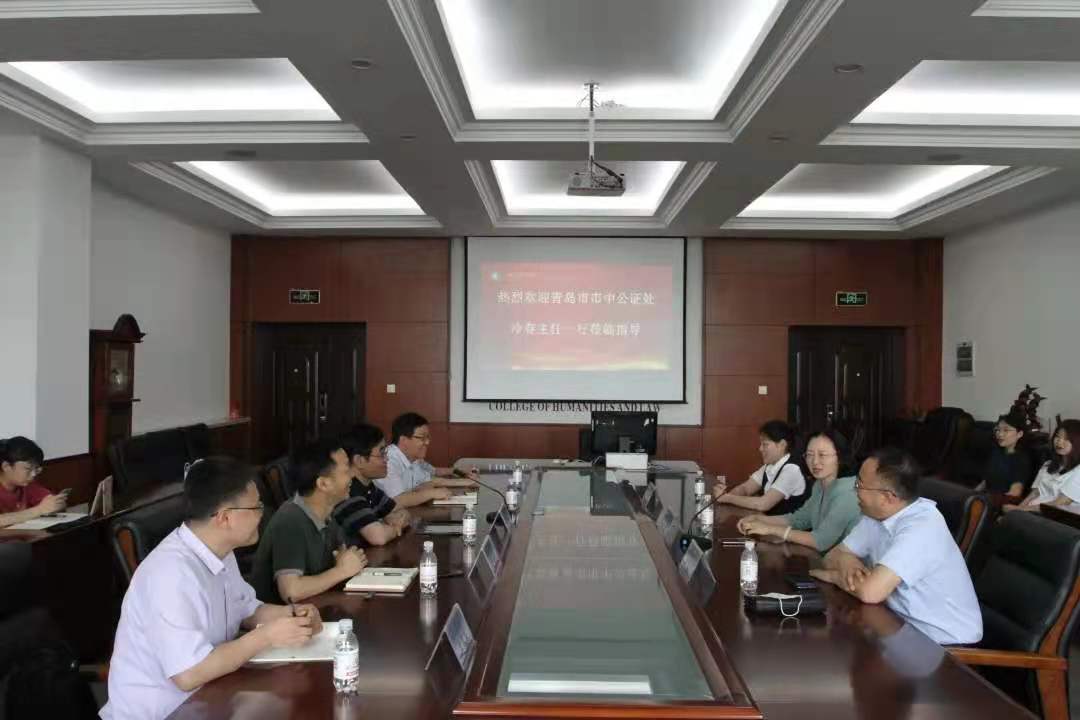 2021年7月1日,青岛市市中公证处主任冷春、主任助理肖常季、公证员王莉一行来访公司,洽谈公证处与公司合作交流事宜,SUNBET·申博(中国区)官方网站-Official Website经理孙法柏、副经理秘明杰、法学系主任吴立志、高新科技与知识产权法研究所所长李钢、诉讼与司法制度研究所所长王次宝参加此次座谈。