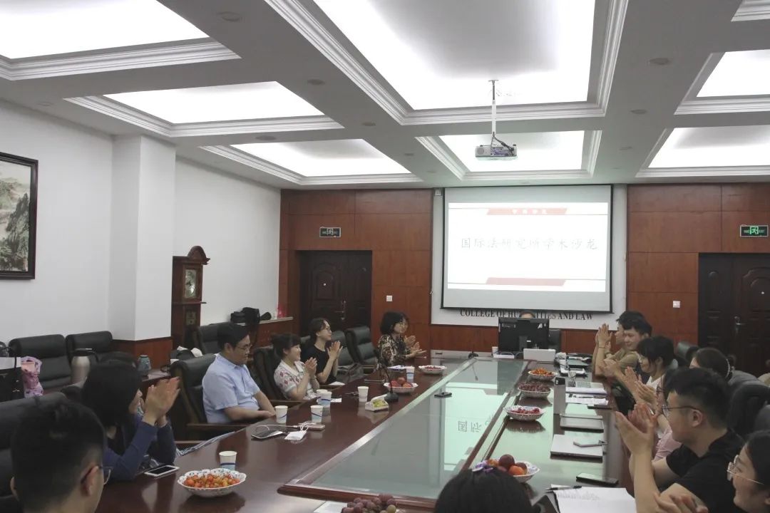 2021年6月22日晚,SUNBET申博国际法研究所在J9-321成功举办了主题为“国际法前沿问题探讨”的学术沙龙。沙龙采取线下形式进行,研究所孙法柏老师、韩天竹老师、牛哲莉老师受邀出席,研究生共计近20人参加了本次活动。
