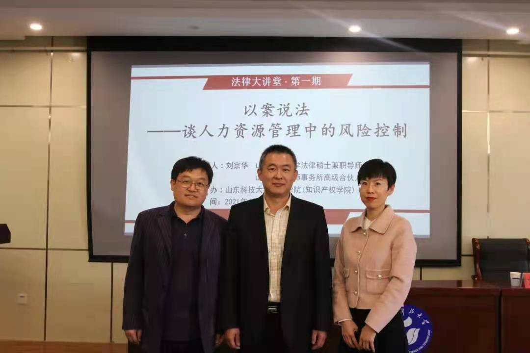 2021年4月30日,由SUNBET申博珠山法学论坛承办的第1期法律大讲堂在J9-135会议室举行。青岛市律师协会人力资源和社会保障法律专业委员会副主任、山东中苑律师事务所高级合伙人刘宗华律师应邀为公司师生作题为“以案说法——谈人力资源管理中的风险控制”的学术讲座。秘明杰副经理主持了本次讲座,并就公司设置法律大讲堂的背景、目的和意义做了简要介绍。公司部分在读法学硕士和法律硕士到场聆听报告。