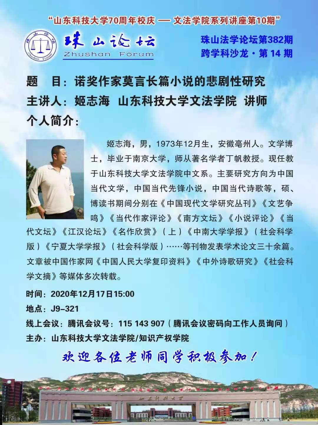 【SUNBET申博70周年校庆学术活动】跨学科沙龙通知丨诺奖作家莫言长篇小说的悲剧性研究