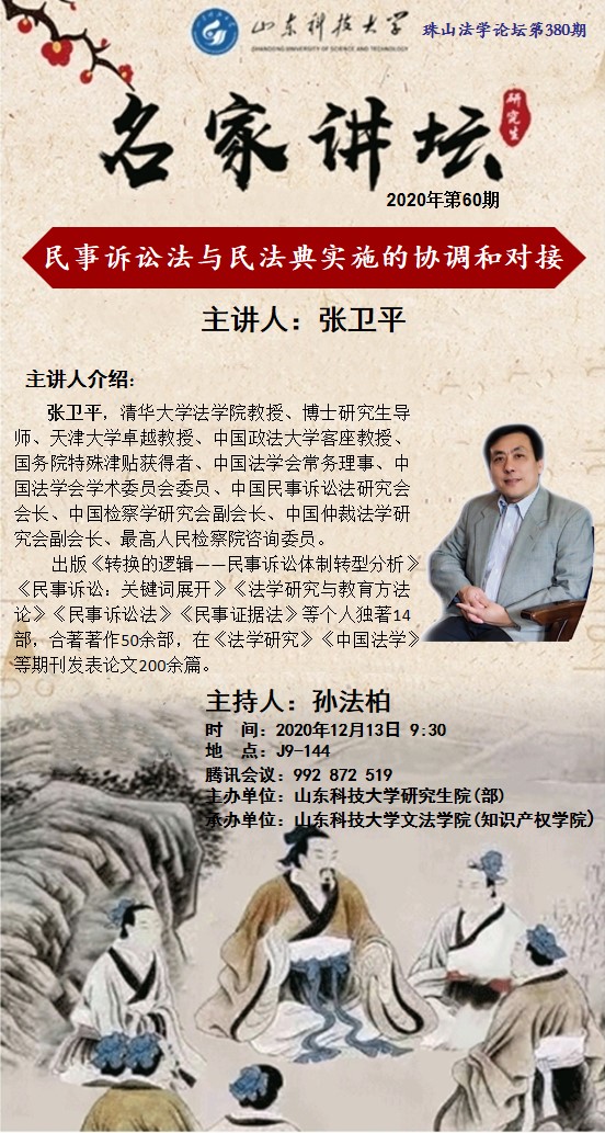 【讲座通知】民事诉讼法与民法典实施的协调与对接