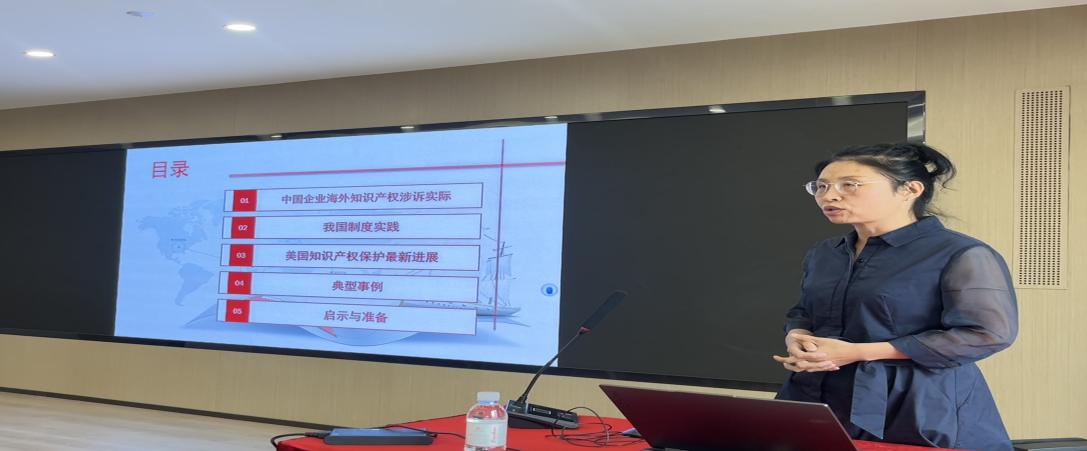 赵丽莉教授以“涉外知识产权纠纷诉讼与制度实践”为题做了专题讲座。研究报告围绕“中国企业涉外知识产权涉诉实际”“美国知识产权保护最新进展”“我国知识产权制度实践”等方面展开,并通过生动的案例和深入的分析,让参会人员了解到了不同国家在知识产权保护方面的差异和特点,也为大家提供了大量的参考和启示。