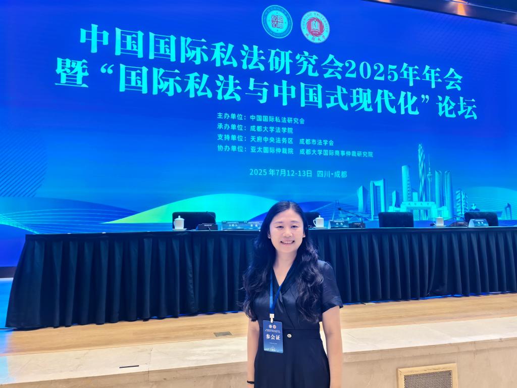 2025年7月12日至13日,中国国际私法研究会2025年年会暨“国际私法与中国式现代化”论坛在成都隆重举行。本届年会由中国国际私法研究会主办,成都大学法公司承办。来自全国各地高等院校、涉外法律服务机构、司法机关的四百余位专家学者参加会议。我院单娟老师应邀参加了会议。