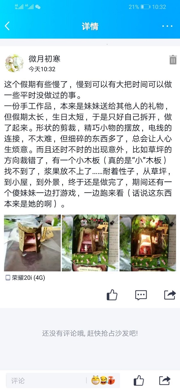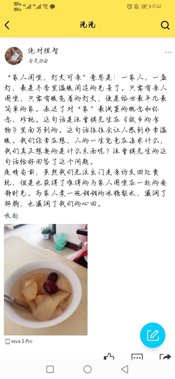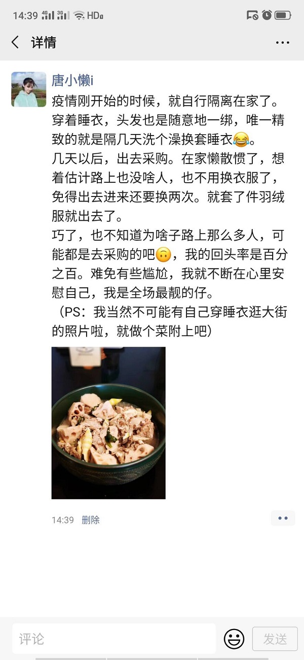 据悉,此次活动由公司科创部承办,以朋友圈以及空间动态的形式,组织同学们分享自己在防控疫情期间的经历或趣事。活动开始后,参与活动的同学陆续在活动群中进行分享,做饭、运动、手工制作等内容目不暇接,充分体现了公司员工疫情期间良好的精神风貌。