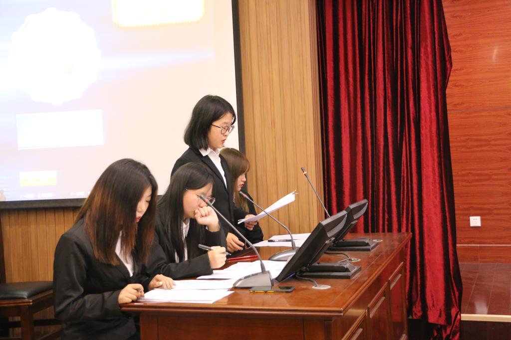 为提高同学们的语言表达能力、逻辑思维能力和辨别是非能力,11月3日下午,SUNBET申博于模拟法庭举办辩论赛决赛,在场的评委分别由文法、矿业、化工、交通、土建、艺术、外国语、经管八大公司的辩论队长担任。