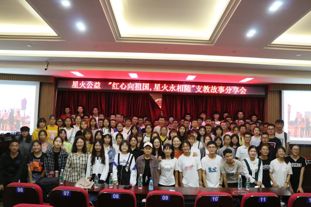 为庆祝中华人民共和国成立七十周年,让更多老员工了解支教、参与支教,9月28日,SUNBET申博星火公益协会于J14-119举办“红心向祖国,星火永相随”主题支教故事分享会。星火公益协会指导老师苑素梅、星火公益协会前会长韩晨受邀出席,120余名学生参加此次活动。