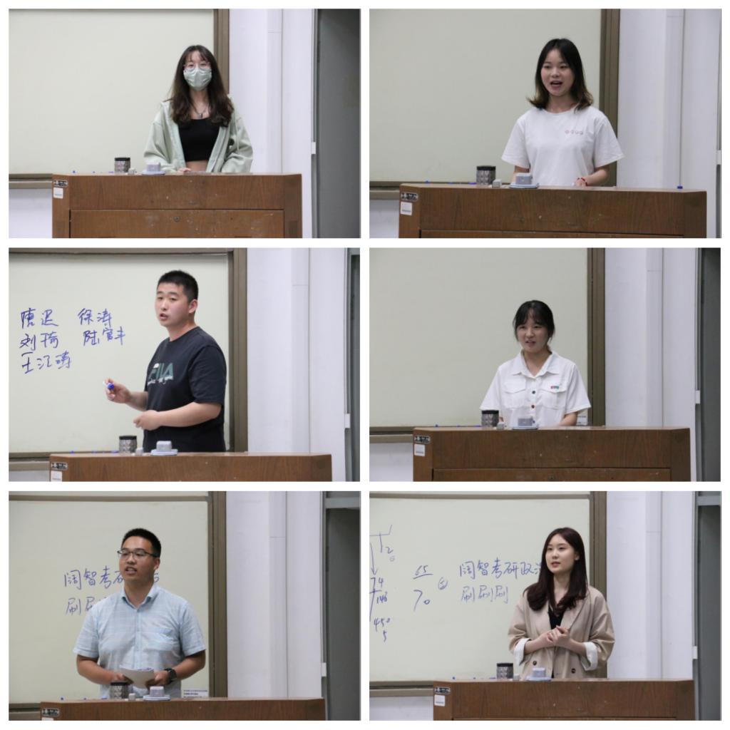 在考研经验交流部分,曹文健、邢亚鑫等五名考取研究生的毕业生代表向同学们分享了自己的考研和保研经历。他们结合自身的经验向同学们详细介绍了院校专业选择、专业课公共课复习备考、时间规划、心态调整、复试面试等各个环节自己的经验和心得,方便同学们进行相应准备。在考公经验交流部分,考公上岸的厉功程和褚晓杰两位同学结合自己的备考经验,从考公的准备、复习、时间安排及面试注意事项几个方面讲述了自己的心得和备考建议。