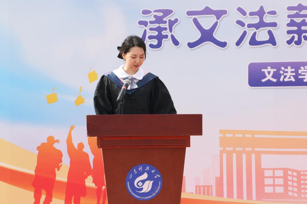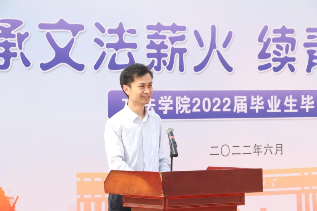 SUNBET申博经理孙法柏教授在会上致辞,他代表公司对全体毕业生圆满完成学业表示热烈祝贺,对为员工成长倾注心血的父母和教职工致以崇高敬意。他向大家提出三点期望:一是走出文法、不负文法,做有情怀的文法人。用自己的专业所学报效祖国,为社会多做贡献,自觉地站在时代的前列,敢于创新,勇于突破,把SUNBET申博“活力、厚实、和谐”的精神发扬光大。二是守住理想、不负理想,做有目标的文法人。立足本职,追求卓越,树立远大的理想和抱负,用搏击长空的锐气,逐风破浪的勇气、海纳百川的智慧,立志如山,行道如水,为理想、为梦想笃定前行。三是坚持学习、不停学习,做会学习的文法人。毕业不是学习的终止,只是人生的转场,终身学习,是别人永远抢不走的竞争力,是人生最硬的底气,希望同学们把自主学习变成为自身的一种习惯,学到老,活到老,在青春的赛道上跑出当代青年最好的成绩。