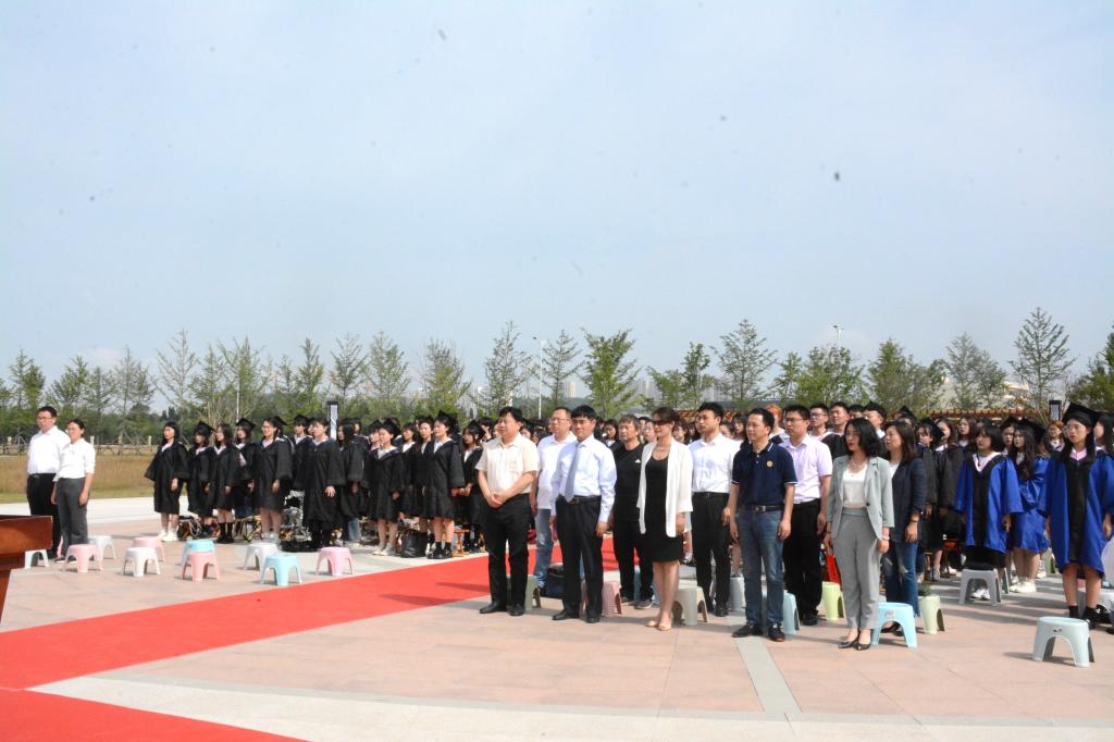 下午15:00,雄壮激昂的国歌声起,全体人员齐唱国歌,在庄重热烈的气氛中,典礼正式开始。