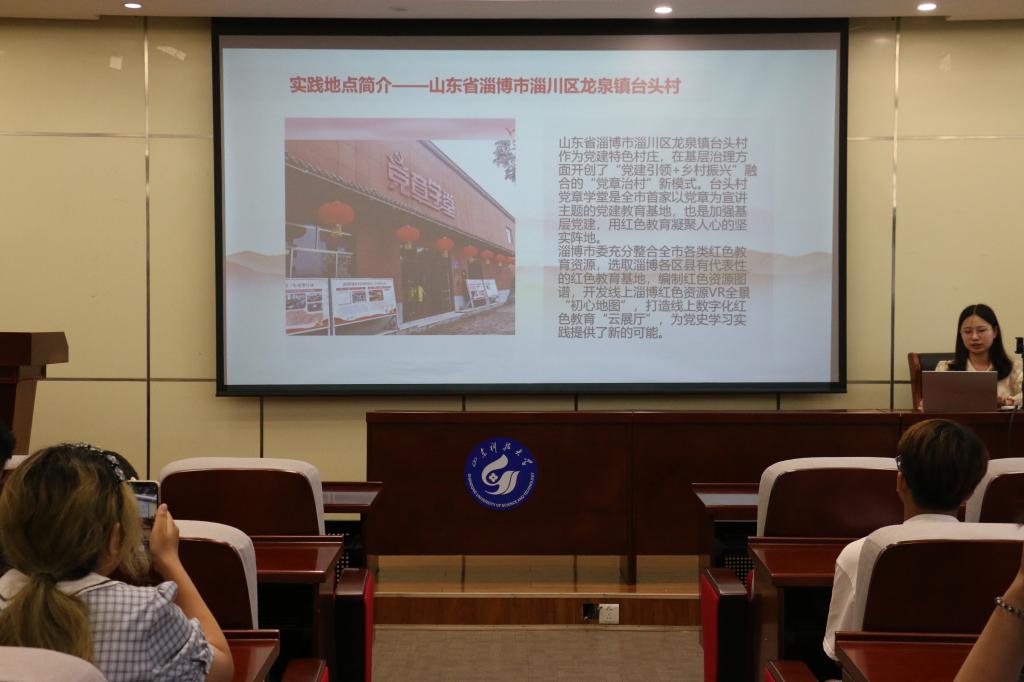 任永合介绍了此次培训的主要内容及相关意义,并对疫情防护和安全问题进行了强调,他指出,实践选题要紧随时代潮流,遵从政治导向,展现团队特色;各团队要加强与指导老师、团队成员的沟通,听从老师的建议与指导,为实践活动的顺利进行夯实基础。随后,王筠涵同学就前期选题规划、中期实践过程、后期成果转化等方面向同学们进行了分享,对文字和音像材料进行收集整理,做到真实、准确、时效,以备进行媒体宣传,同时对实践过程中可能遇到的困难也为同学们提供了可行的解决方案。张莹莹同学从新闻稿的宣传展开培训,通过理论讲解与实例分析相结合的形式,生动形象地向同学们展示了如何提炼新闻标题,如何撰写优秀的宣传文字,如何拍摄生动的新闻图片,提高同学们社会实践新闻宣传的能力。