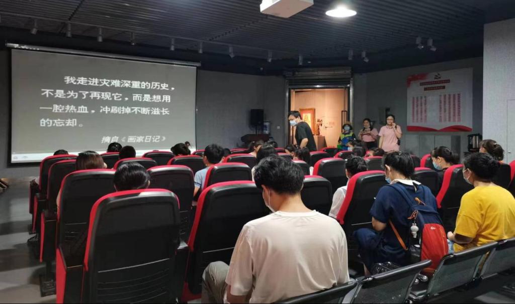 参观结束后,志愿者组织孩子们观看了关于蔡玉水先生创作历程的纪录片。蔡先生的《中华百年祭》可谓十年磨一剑,高度还原的历史场景让在场人员深刻领悟了共产党人救亡图存、改变命运的信仰追求与逐梦前行、顽强坚毅的赤子情怀。蔡玉水先生对待红色历史的严肃态度也给大家上了一堂意义深刻的爱国主义教育党课。