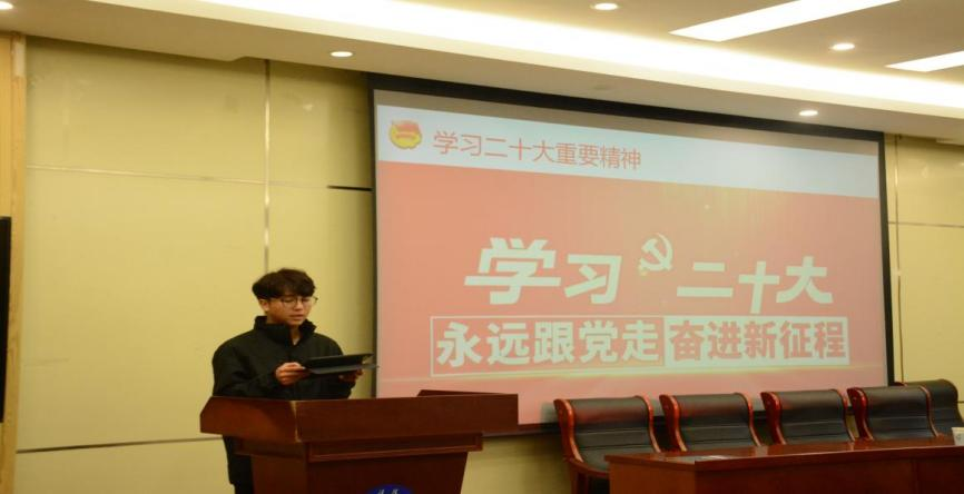 在团支书的带领下,各团支部再次集体观看了习近平总书记在二十大报告中殷切寄语广大青年的视频,学习领会中国共产党第二十次全国代表大会胜利召开的意义以及重要性。在这份红色力量的感染下,团员代表分享自己学习党的二十大精神的感悟,号召大家努力学习专业知识,肩负起新时代中国青年的责任与担当,积极投身全面建设社会主义现代化国家征程中,为党和国家的发展贡献自己的青春力量。
