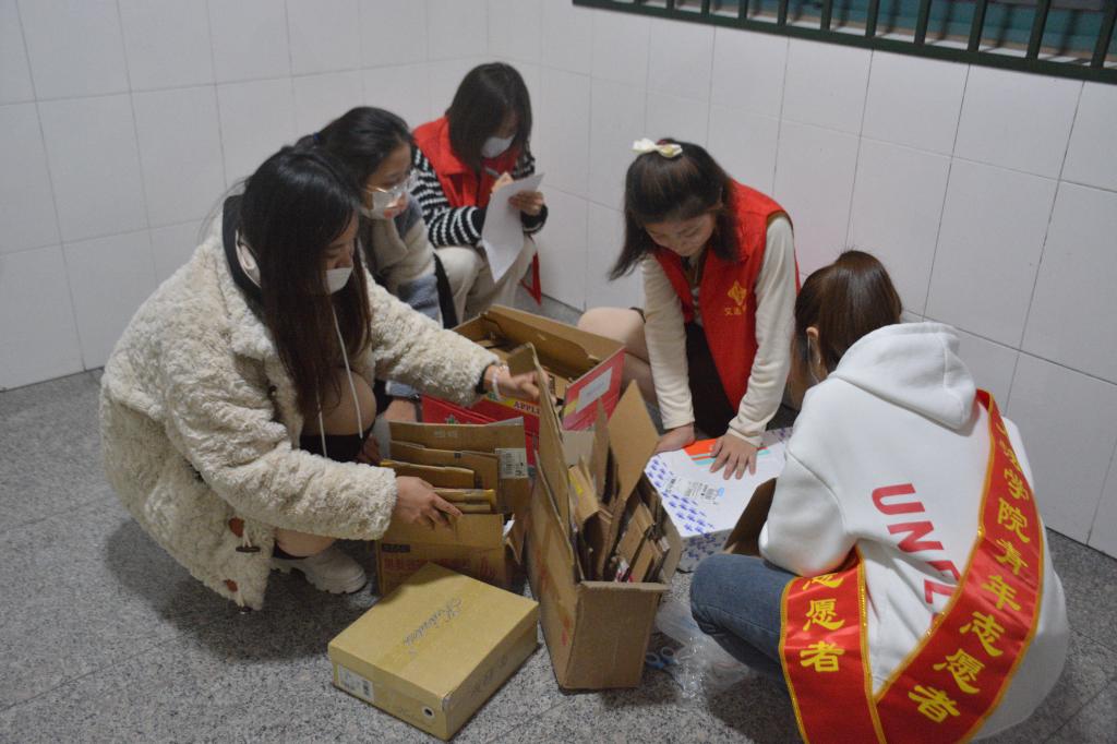 本次活动主要在A14、A16和C12公寓楼开展,经过分组、分发工具、安排楼层等一系列准备工作,志愿者们到各自所分派楼层的寝室逐个询问,收集各宿舍日常积累下的如快递纸盒、塑料瓶、稿纸和二手书等可回收物品,并将收集的“战利品”拿到楼下指定地点。活动吸引了不少同学的关注,甚至有同学主动把可回收物整理好送到集中回收废品的地点。志愿者们表示:“此次活动不仅使得同学们的旧物处理问题得到有效解决,实现了资源的回收再利用,也为公益事业贡献了一份力量,如果以后还有这样的志愿服务活动我还是会积极参加的”。