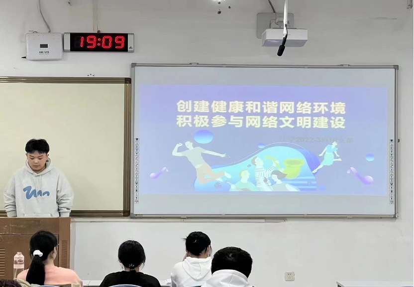 活动中,团支书赵建博通过播放网络安全和网络文明宣传片,引导同学们认识到网络安全和网络文明的重要性,树立正确的网络观。此外,他还带领大家学习了相关法律法规和文明上网行为规范,结合网络诈骗、虚假信息传播等典型案例,教育同学们要学会善于明辨是非,摒弃虚假信息,杜绝不良诱惑。最后他号召同学们绿色上网、文明上网,争做有高度的安全意识、有文明的网络素养、有守法的行为习惯、有必备的防护技能的“四有”好网民。