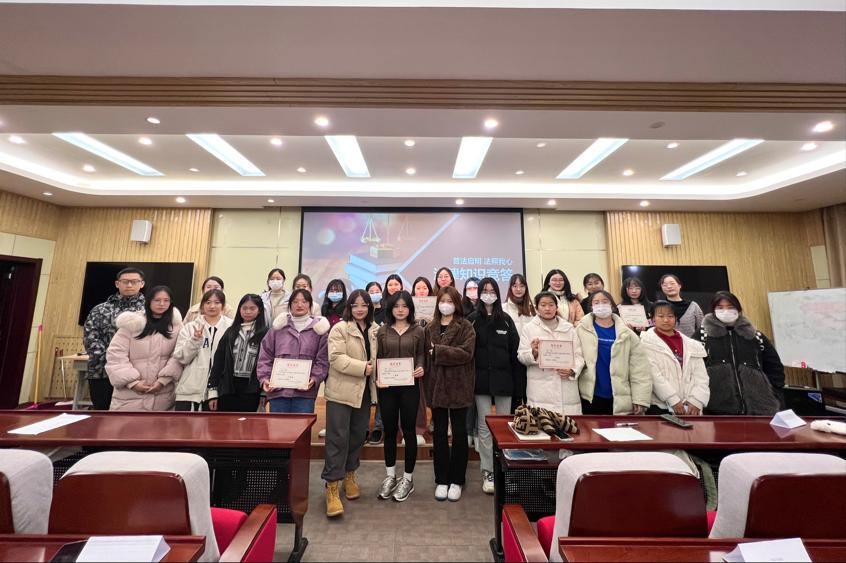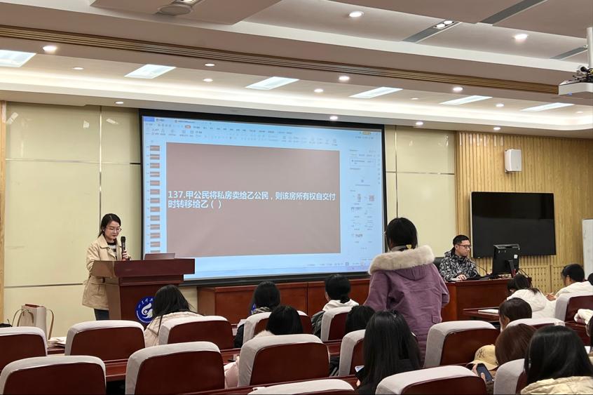 本次法律知识竞答题目类型分为单选题、多选题和判断题,以历年司法考试和考研真题作为题库,内容涉及宪法、民法、刑法、中国法律史等,重在考察各组参赛队伍对法律知识的掌握程度以及解决法律问题的应变能力和思辨能力。比赛现场气氛热烈紧张,各支参赛队伍互相配合,积极作答,充分展现了扎实的法律知识基础和良好的法律素养。经过激烈的比拼,“管我对不队”获一等奖,“发际线和我作队”“南波万队”获二等奖,“我竟无言以队”“飞跃队”“弘法沧澜队”获三等奖。工作人员向获奖队伍颁发荣誉证书,本次法律知识竞答活动在同学们的掌声中落下帷幕。