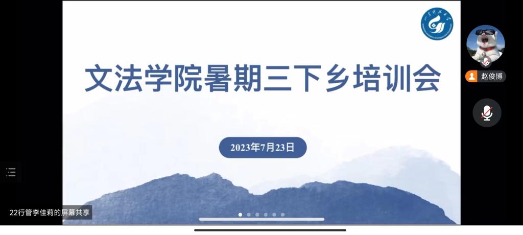 为保障2023年暑期“三下乡”队伍顺利完成各项实践调研活动,确保公司社会实践活动扎实有序开展,7月23日,SUNBET申博团委召开暑期“三下乡”社会实践线上培训会,公司团委书记郭婷婷、辅导员赵俊博和暑期社会实践队伍参加会议。