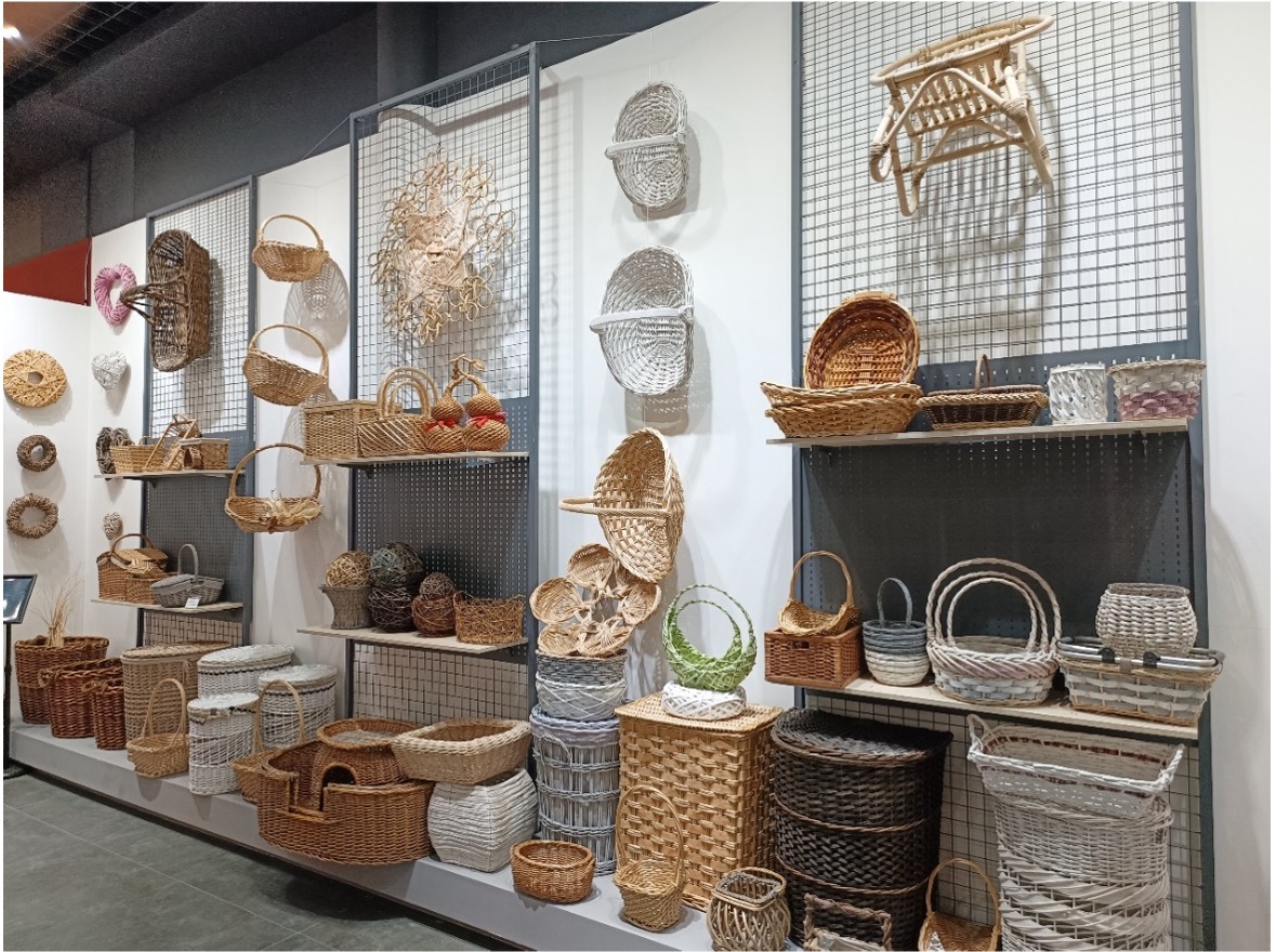 2009年9月,博兴草编被公布为省级非物质文化遗产代表性项目。为全面了解草编文化,新柳团队在工作人员的带领讲解下调研走访博兴县文化馆。馆里展示着各种草编作品,桌椅、箱包、器皿、拖鞋等家具器物以及时尚装饰品,产品达到几千个之多,花色款式新颖别致。“文化馆里展出的草柳编作品所传达出的古时智慧实在感人至深,疏而不漏的酒篓,泄而细密的漏斗,竹篮打水而不一场空,都无不展现出‘诞填以为器,当其无,有器之用’的有无之道。此时的器物已经不再只存有功用的实‘利’,更氤氲出了一层更为深远的精神传承。” 新柳队成员杜弈霖在参观完博兴文化馆后有了更深的感悟。在参观学习结束后,当地工作人员赠送了实践队成员们当地文创产品,队员们也被当地的热情与真诚所感动着。