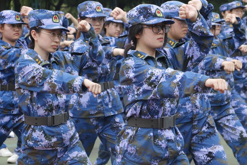 走进军训场地,各方队的军训学员在教官的指挥下操练军体拳。“马步扎好”“身体稳住”“腰部出拳”,教官一边示范一边讲解,在教官们的细心指导下,同学们的军体拳开始像模像样,出拳能到位,单脚能独立,马步能扎稳,动作渐标准。烈日当头,即使汗水浸湿衣衫,同学们依旧精神抖擞,斗志昂扬!