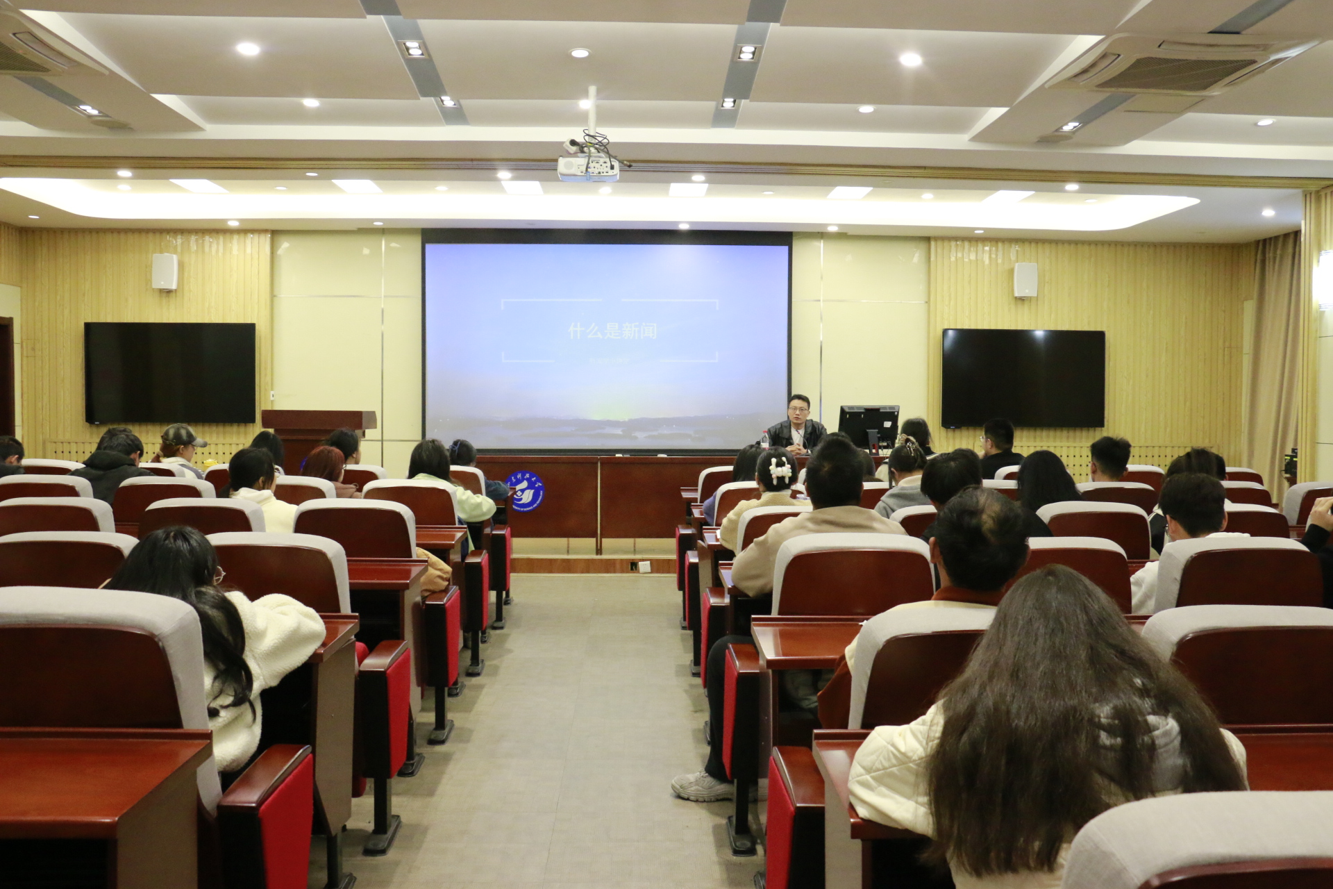会上,任波老师从“新闻的定义”“新闻的作用意义”以及“新闻的主要特征”三个方面对新闻进行了详细介绍和讲解,结合近年来的工作和典型案例,介绍了在媒体深度融合背景下,如何加强新闻宣传和创新。此外,他将同学们所学专业特点和新闻特点进行比较分析,并对新闻的写法进行了拆分讲解,现场气氛活跃,反响极佳。