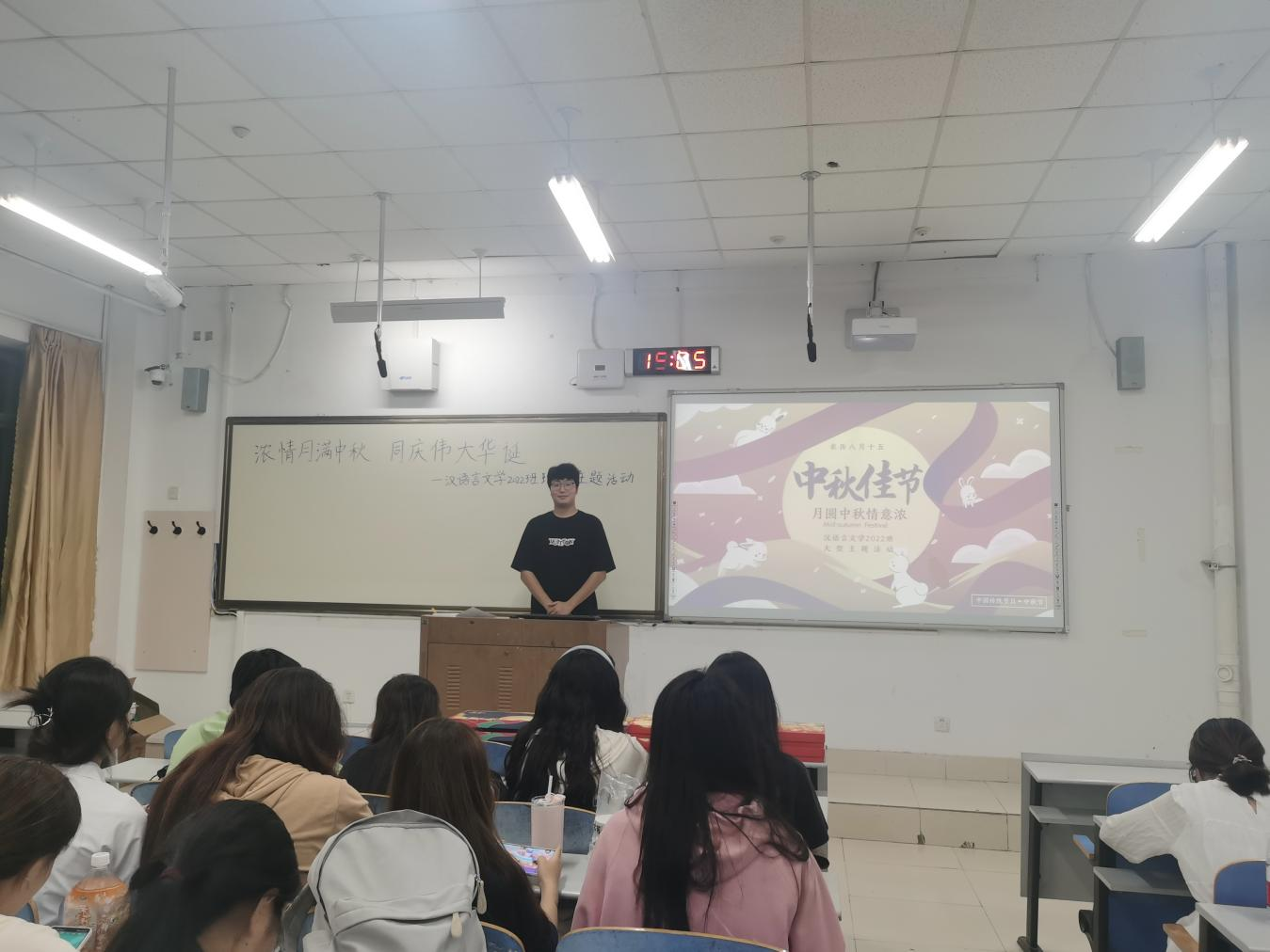 为深入贯彻落实爱国主义教育和优秀传统文化教育相结合,丰富校园文化生活,在中秋节来临之际,汉语言文学2022级团支部开展“浓情月满中秋,同庆伟大华诞”主题团日活动。