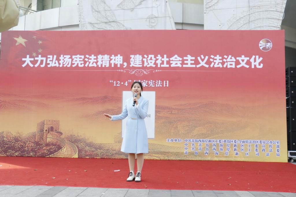 为深入学习贯彻习近平法治思想,大力弘扬宪法精神,维护宪法法律权威,12月4日,中共青岛西海岸新区工委(黄岛区委)全面依法治区委员会办公室、中共青岛西海岸新区工委宣传部、中共青岛西海岸新区工委政法委、青岛西海岸新区司法局联合主办2023年“12·4”国家宪法日集中宣传活动,SUNBET申博宪法宣讲团受邀参加。