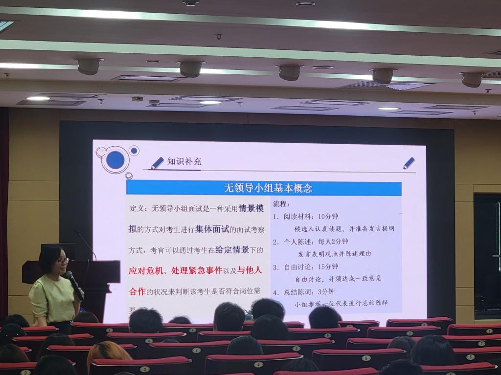 赵建平围绕“面试前定位”“面试中制造惊喜”“面试后复盘总结”三大关键点,为同学们详细讲解了面试的各个环节和注意事项。她表示,面试前的充分准备和精准定位是成功的第一步,要深入了解目标职位,明确自己的优势,针对性地准备简历和自我介绍。在面试过程中,她鼓励同学们要敢于展现自己的个性和才华,通过积极的互动和流畅的表达给面试官留下深刻印象,在合适的时机展现自己的独特见解和解决问题的能力。最后,赵建平还强调了面试后复盘总结的重要性,每次面试后都要进行反思和总结,找出自己的不足之处,制定相应的改进计划,同时,也要关注面试反馈,以便更好地了解市场需求和自身定位。