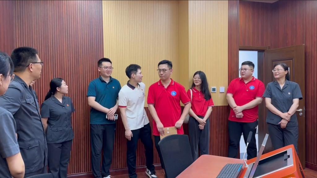 7月25日,实践团成员踏入了泰山区人民法院,体验了在真实司法环境下的法治教育。在法院工作人员的悉心引导下,成员们依次参观了审判庭、诉前调解室以及现代化的数字法庭,深刻感悟到了法治精神和审判文化的精髓。在整个参观过程中,成员们全神贯注地聆听工作人员的详细讲解,认真记录要点并积极互动,营造出一种浓厚而热烈的学习交流氛围。通过这次活动,成员们对法院执行局的职能范围、调解工作流程以及“枫桥经验”等专业知识有了初步但深入的认识。参观结束后,法院执行局负责人与成员们进行了亲切而深入的交流。在对话中,负责人耐心解答了成员们提出的问题,并在互动尾声阶段,针对成员们的未来就业方向提供了宝贵的建议,使得这次实践活动的收获更加丰富,为实践团成员的职业规划提供了有益指导。