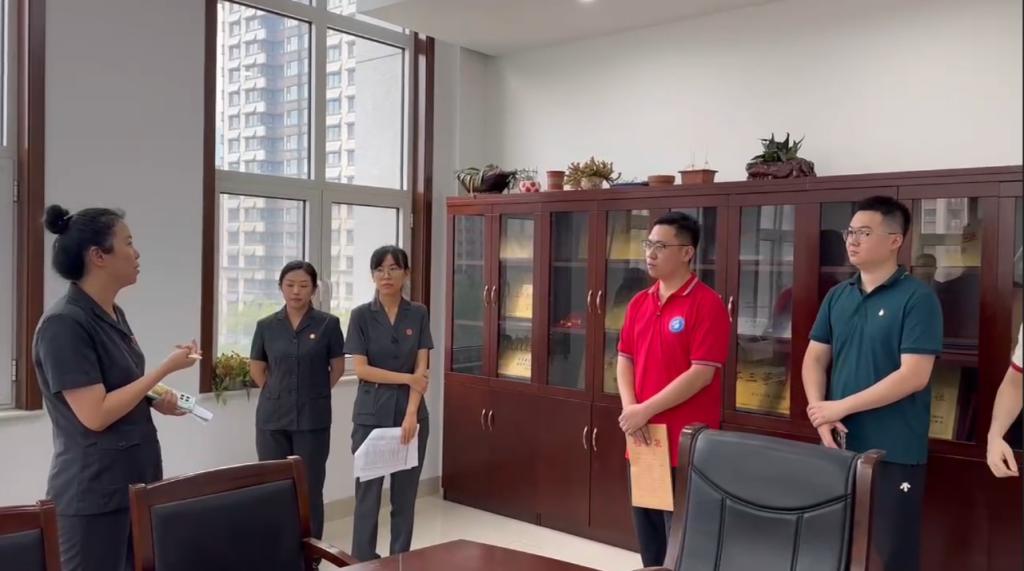 7月25日,实践团成员走进泰安市司法局,与工作人员进行了深入的交流与学习。在工作人员的引导下,成员们参观了公共法律服务中心和泰安公证处,了解司法局的工作内容与流程。在公共法律服务中心,工作人员详细介绍了司法局的工作职能与责任,并围绕地方性法规草案起草、行政执法监督、全市法治社会建设及社会法律服务等方面进行了深入讲解;在泰安公证处,工作人员通过体彩、留学、继承等具体案例,生动形象地阐释了公证处的主要工作内容,使成员们对公证处有了更清晰的认识,进一步拓宽了法治视野,收获颇丰。