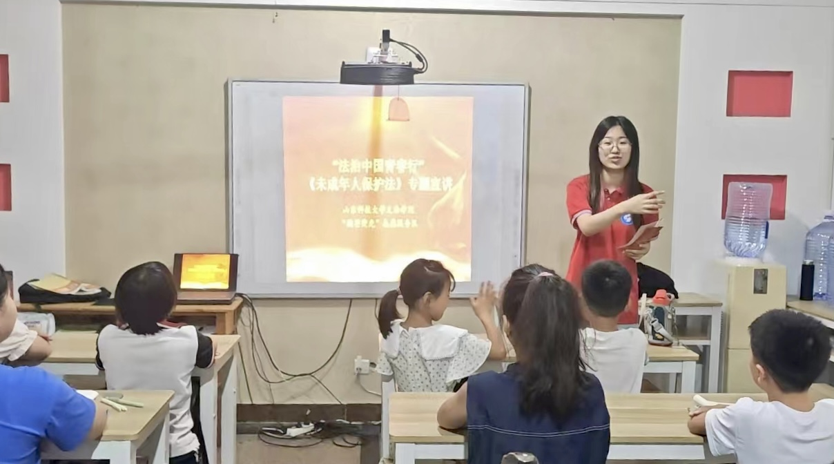 “什么是校园欺凌?”“扫码免费送游戏皮肤可信吗?”,在临沂市银河湾社区青葵课堂、寿光市某教育培训公司,团队为小员工们带来了精彩的普法小课堂。队员们精心制作宣讲课件,用小员工们喜闻乐见的形式,深入浅出地讲解未成年人保护以及未成年人犯罪应承担的责任等法律知识,教育引导孩子们在生活中遇到不法侵害应该怎么做,学会运用法律武器保护自己。采用课堂穿插互动问答、趣味游戏等形式,通过分享真实的网络诈骗案例,讲解网络诈骗的常见类型和手段,让孩子们了解诈骗的危害和后果,提高警惕性,增强自我防范和预防违法犯罪意识。