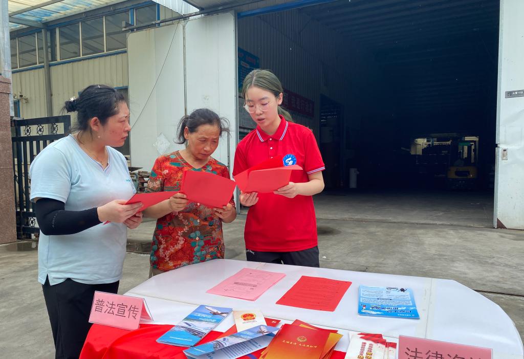 围绕群众法律需求,队员们还深入工厂、集市、社区、田间地头,用“唠家常”的方式为基层群众送上接地气的“法律套餐”。在平度市经济开发区的千熙纸业有限公司,队员为车间工人送上宪法、民法典、劳动合同法等宣传画册并现场讲解;就工人们关心的劳动合同签订、工伤赔付等问题提供法律咨询;围绕劳动权益方面的法律法规,结合实际案例以案释法,引导工人们运用法律武器维护自身合法权益。在寿光市田柳镇农贸市场,队员为商贩和赶集的群众面对面讲解民法典、消费者权益保护法,把“法”送到群众身边,引导群众办事依法、遇事找法。活动共计发放各类宣传材料300余份。