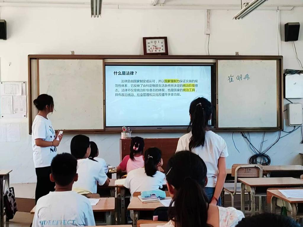 携法律下乡,为孩子们带来“基础法律小课堂”。团队成员分别前往广西壮族自治区柳州市融安县潭头乡中心小学、山东省济宁市泗水县八士庄两地开展支教活动。面向乡村儿童,成员们宣讲《中华人民共和国未成年人保护法》《中华人民共和国义务教育法》等关于未成年人切身利益的法律知识;针对广大村民,开展了法治宣传讲座,法治教育普及活动,并联合当地村委会等机构宣传法律,通过家访交流聚焦在广大乡村人民对法律最迫切的期待、从农民最真实的心声里寻找方向,鼓舞当地村民主动学法,依法维权,营造良好的法律氛围,推进法治乡村建设。