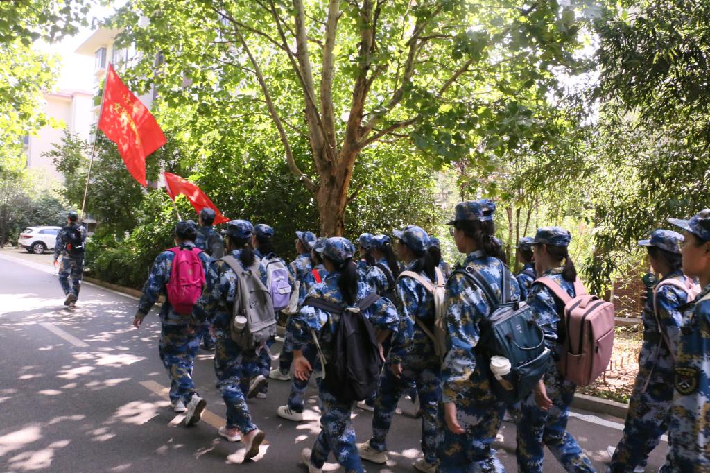 9月9日上午,2024级新生军训拉练在风雨操场拉开帷幕。所有军训学员在指定地点集合完毕整装待发,在教官的统一带领下,开启了行军拉练之旅。