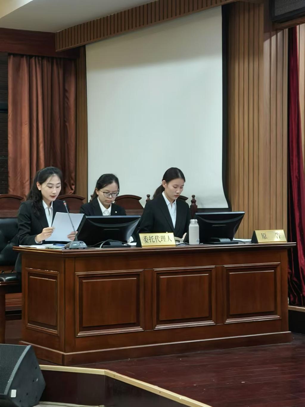 场上,围绕胎儿与李某某关于抚养费纠纷一案,原被告双方各自为当事人的利益展开交锋。原告代理人任晓彤、孙梦琦、王佳妮同学容法理情为一体,灵活应变,展现出扎实的学术功底。凭借有力的法条引用、恰当的法理论述和大量相关司法实践中的类案运用,她们站在公平公正的立场上充分维护当事人胎儿的合法权利。被告代理人刘泉琳、桑心茹、张钊恺同学通过陈述、举证、质问、发言、辩论等环节保护着当事人李某某的正当利益,辨法析理、情法辉映,现场观众身临其境,心态随辩论形势跌宕起伏。