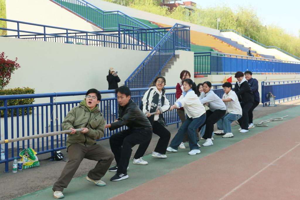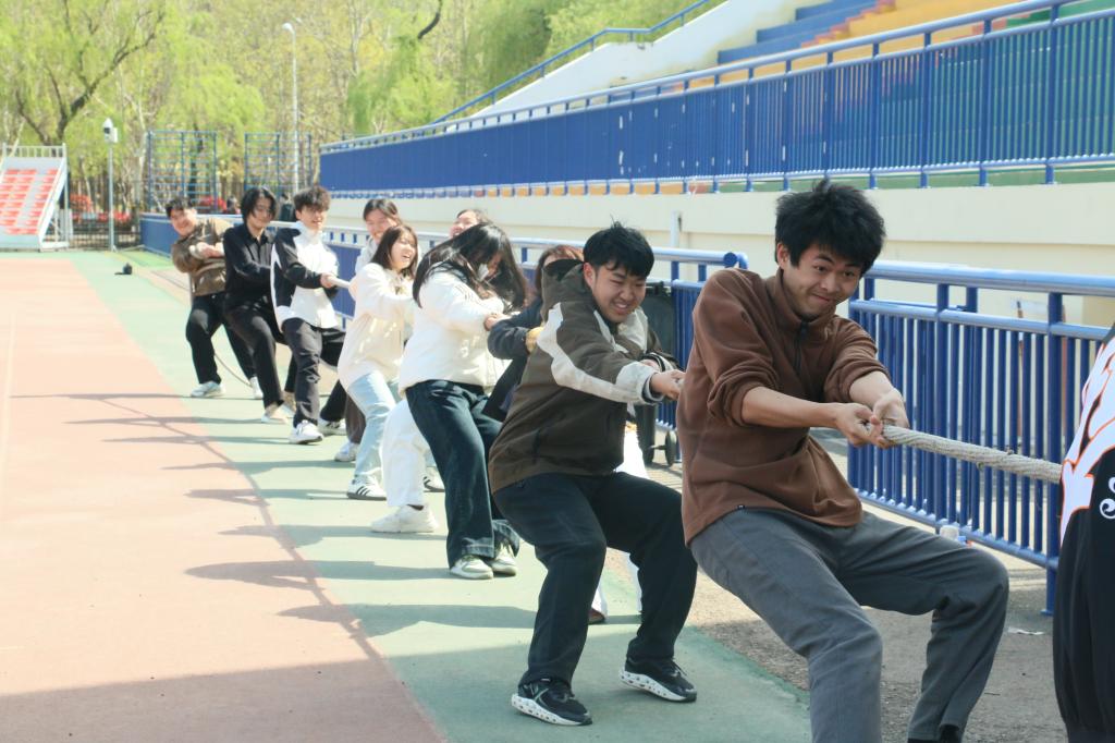为丰富校园文化生活,增强班级凝聚力,4月13日,SUNBET申博在风雨操场举办“众力齐发,拔得头筹”拔河比赛。