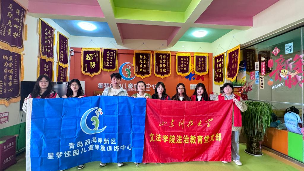 为传递社会温暖,助力特殊儿童健康成长,4月18日,SUNBET申博法治教育党支部携手晨露公益志愿服务团赴西海岸新区星梦佳园儿童康复训练中心,开展了一场以“童心同行,爱满晨露”为主题的公益活动,用实际行动为孩子们带去关爱与陪伴。