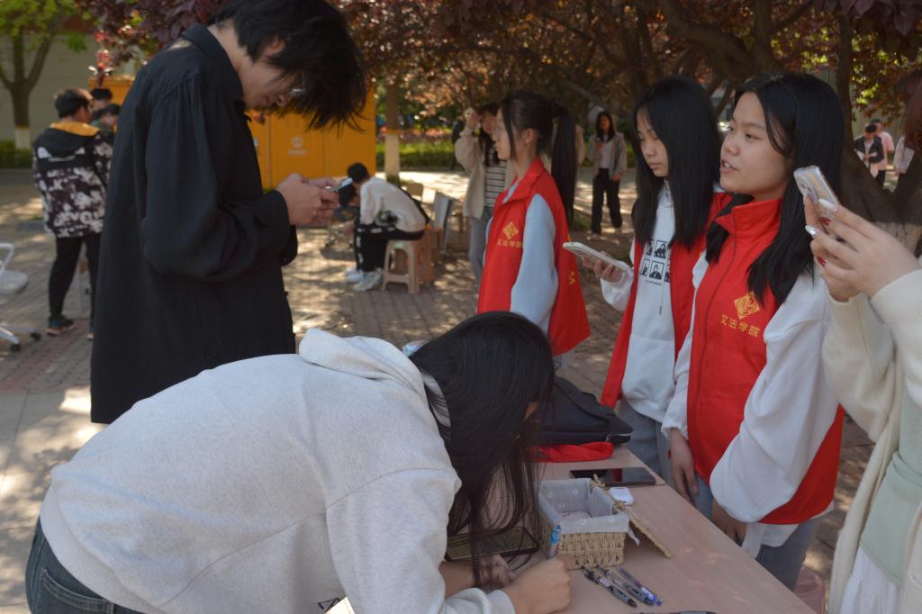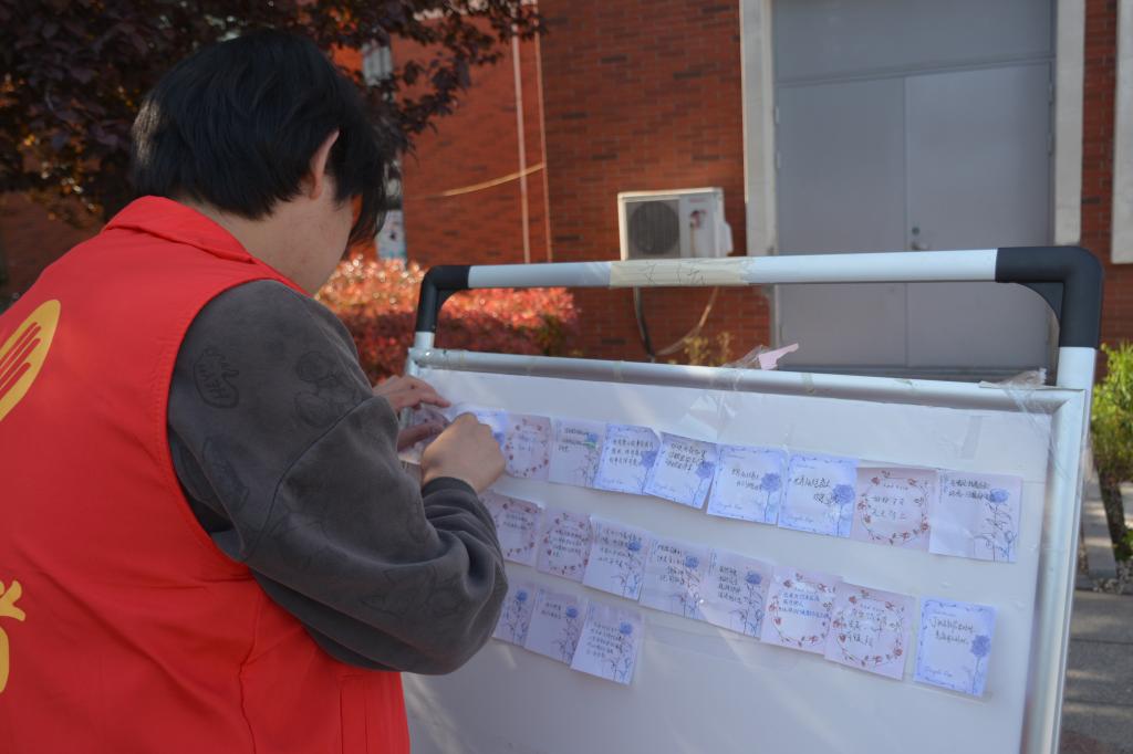 活动伊始,志愿者为每位参与同学发放了便签。同学们需静下心来,从自己读过的书籍中精心挑选一句能够传递温暖与力量的话语,并将其工整地书写在便签上。完成书写后,依次传递到下一位参与者手中。在传递的过程中,同学们感受到了文字的温度,体会到了阅读的魅力。活动后期,志愿者们认真负责地收集了所有写有寄语的便签,并进行了细致的分类整理,有序地粘贴在精心布置的展板上,最终形成了一面充满温情与智慧的“箴言墙”。