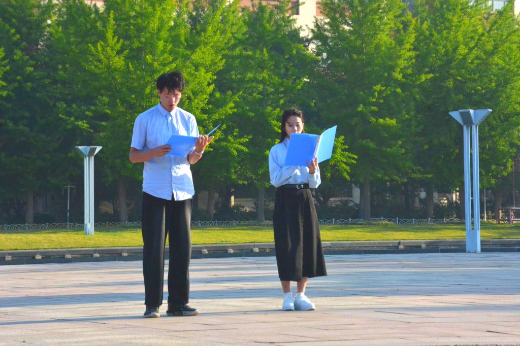 法学2024-1班刘钦涵、张天一以《青春中国》为题进行国旗下演讲,深情回顾五四运动的光辉历史,生动讲述新时代青年的奋斗故事,号召同学们传承五四精神,以青春之我建设青春中国。