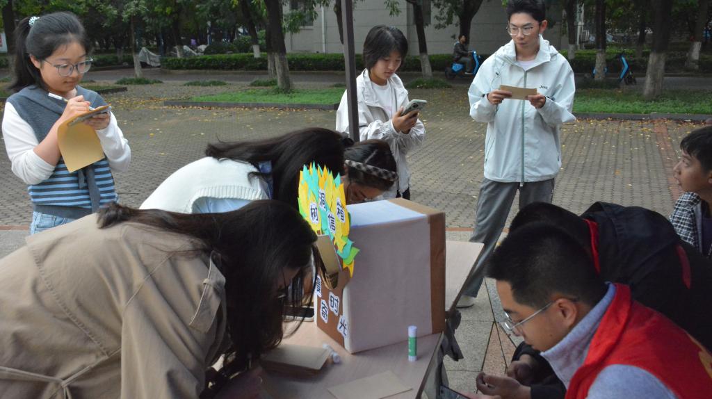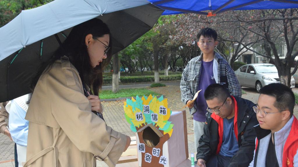 活动现场设置“树洞信箱”环节,同学们将内心的烦恼、困惑以及对未来的美好憧憬倾注于信纸之上,装入信封后投入“树洞信箱”专用邮筒,一年后,这些承载着青春梦想与心声的信件再逐一返还到参与员工的手中。同学们可以在活动中梳理情绪、释放压力,同时感受时光的沉淀与心灵的成长,从而以更加从容自信的姿态迎接未来的挑战。活动期间,工作人员还巧妙地穿插了小型互动问答环节,在轻松愉悦的氛围中,分享心理健康小知识,鼓励同学们勇敢打开心扉,表达真实自我。