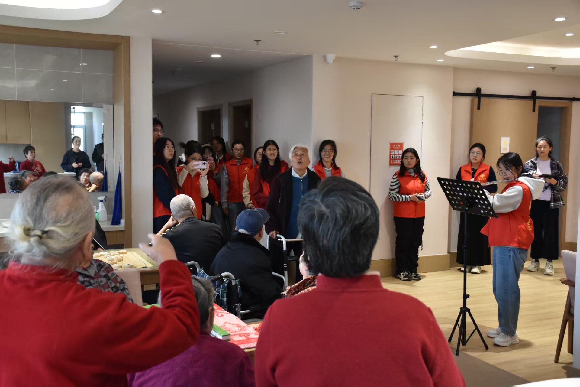 活动开场,公司器乐队的志愿者们率先登场,带来器乐演奏《梁祝》《映山红》《如愿》等经典曲目,老人们也跟着乐声一起哼唱,构成一曲曲动人的旋律,现场响起阵阵热烈而持久的掌声。演奏结束后,志愿者们迅速化身为贴心的陪伴者,积极投入到与老人们的互动交流中。有的志愿者与老人相对而坐,展开棋艺“智慧对决”。有的志愿者化身耐心的倾听者,认真聆听老人讲述过去的点点滴滴。还有一部分志愿者积极协助老人参与趣味娱乐活动,他们手把手地教老人做游戏,欢声笑语回荡在敬老院的每一个角落。