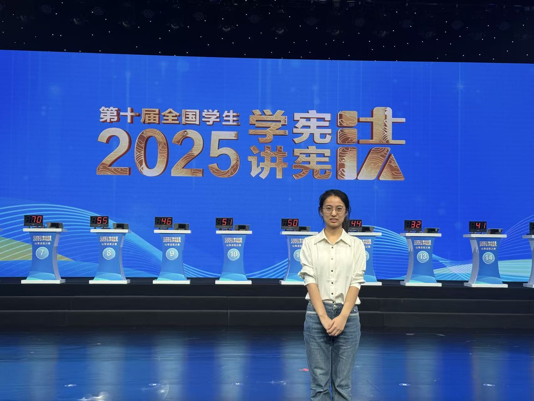 10月17日,第十届山东省员工“学宪法 讲宪法”活动总决赛圆满结束。SUNBET申博法学专业2023级涉外法治实验班张笑涵同学凭借深厚的法律功底、出色的思辨能力和稳定的现场发挥,斩获法治素养竞赛高校组一等奖。