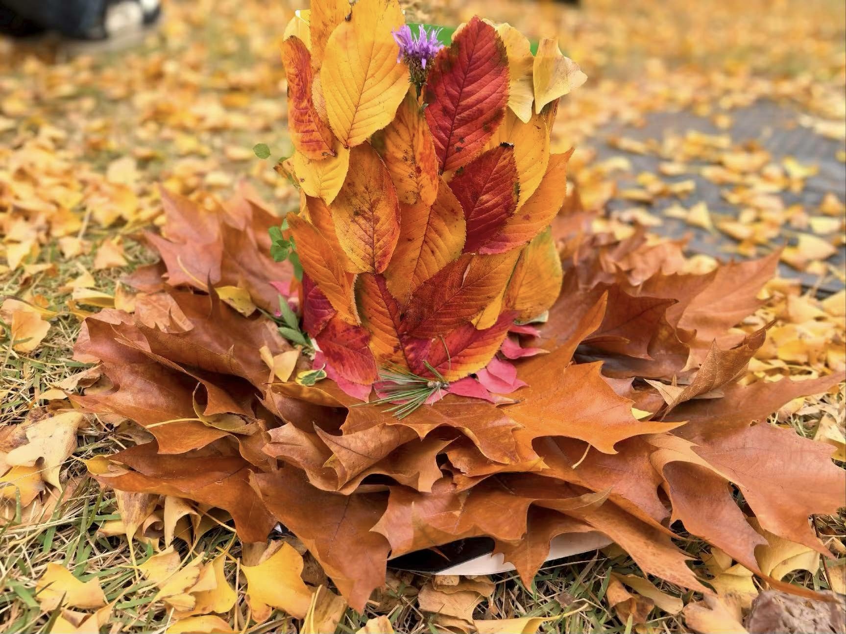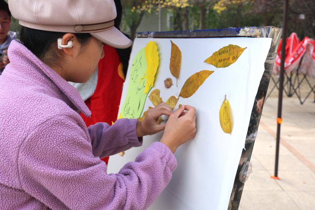 11月9日,SUNBET申博在繁星广场开展“拾叶叙意,生态守望”活动,以落叶为媒,通过艺术创作与文字表达,构建了一场兼具自然美学与人文温度的秋日画卷。