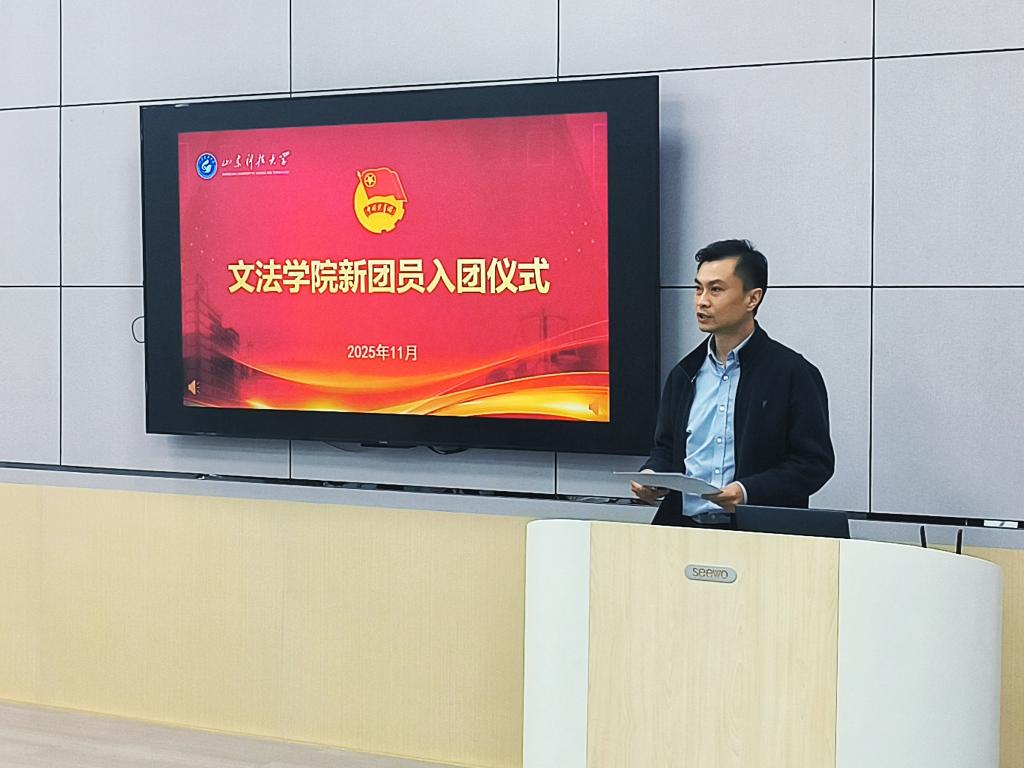 宣读新团员发展名单后,团委老师为新团员佩戴团徽,并颁发团员证。法学2022级1班团支书赵欣雨带领新团员们面向团旗庄严宣誓,表达为共产主义事业奋斗的坚定决心。